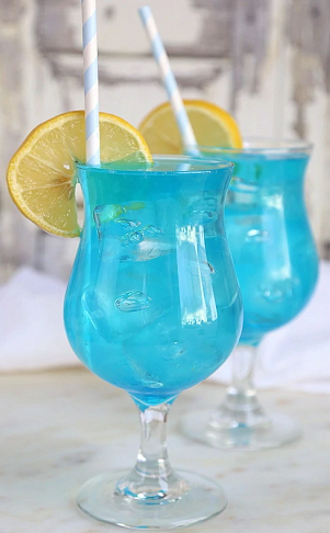 Blue Lagon - Vodka; Soda; Curaçau Blue.