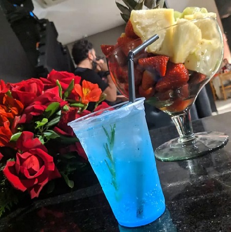 Horizonte - Gim; Suco de Abacaxi; Curaçau Blue; Leite Condesando.