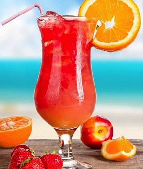SUN BEACH - Suco de Abacaxi, Suco de Pêssego, Groselha e Cobertura de Morango.